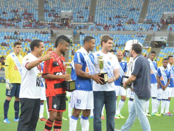 Flamengo campeão da Copa do Brasil 2013 e Cruzeiro campeão do Campeonato Brasileiro 2013, os dois classificados para a copa Libertadores 2014 e no caso do Flamengo sem a possibilidade sem cair para a Serie B do Campeonato Brasileiro, ou seja um jogo sem maiores pretensões, festivo. Foi ventilado a possibilidade de se criar um troféu para apimentar o jogo, como é feito na Europa o campeão do campeonato nacional com o campeão da copa nacional, mas o que se viu antes da partida foi bastante festa com troca de faixas entre as equipes e exposição dos troféus. Tudo muito bom até começar o jogo, pois teve 1 minuto de silêncio em memoria a morte de Nelson Mandela e ao seguido protesto dos jogadores do movimento Bom Senso FC. Quando rolou a bola, parecia disputa de titulo ou um dos times jogando a vida no campeonato para não cair. O Flamengo por estar em casa e a torcida empurrando o time tomou as rédeas do jogo e foi pra cima e conseguiu o seu gol aos 13' do 1º tempo com ele o goleador do novo Maracanã Hernane o brocador. Com o gol o time mineiro saiu mais pro jogo e começou a imprimir um jogo mais viril e deixando a equipe rubro negra sem dois de seus titulares Paulinho e Amaral e ainda teve a expulsão de Carlos Eduardo e Everton em uma discussão boba e por falta de controle do juiz, mas conseguiu terminar o primeiro tempo coma vantagem. No inicio do segundo tempo foi a vez de Samir se contundir e deixar o Flamengo mais desfalcado, foi ai que o Cruzeiro com elenco bem mais qualificado conseguiu o empate aos 18' do 2º tempo com um lindo gol do meia Souza. Os cruzeirenses continuaram comandando as ações até a torcida começar a cantar e empurrar novamente o rubro negro a frente e a dar um calor na equipe mineira, mas no final ficou em 1 x 1 entre as equipes e final de Campeonato Brasileiro para ambos. A se destacar o menino Cesar que fez algumas defesas sensacionais, colocando pulgas atrás das orelhas de Paulo Victor e Felipe, pois tem boa saída do gol e debaixo das traves ele defende muito bem, grande promessa ou se quiserem realidade. E menção honrosa ao que ja tem sido falado, o Flamengo precisa de algumas contratações.